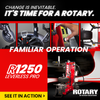 Rotary’s R1250 Leverless Pro Tire Changer features chain-operated dual-bead rollers that empower shops to match-mount tires during their wheel balancing workflow and amplify their productivity to an entirely new level!