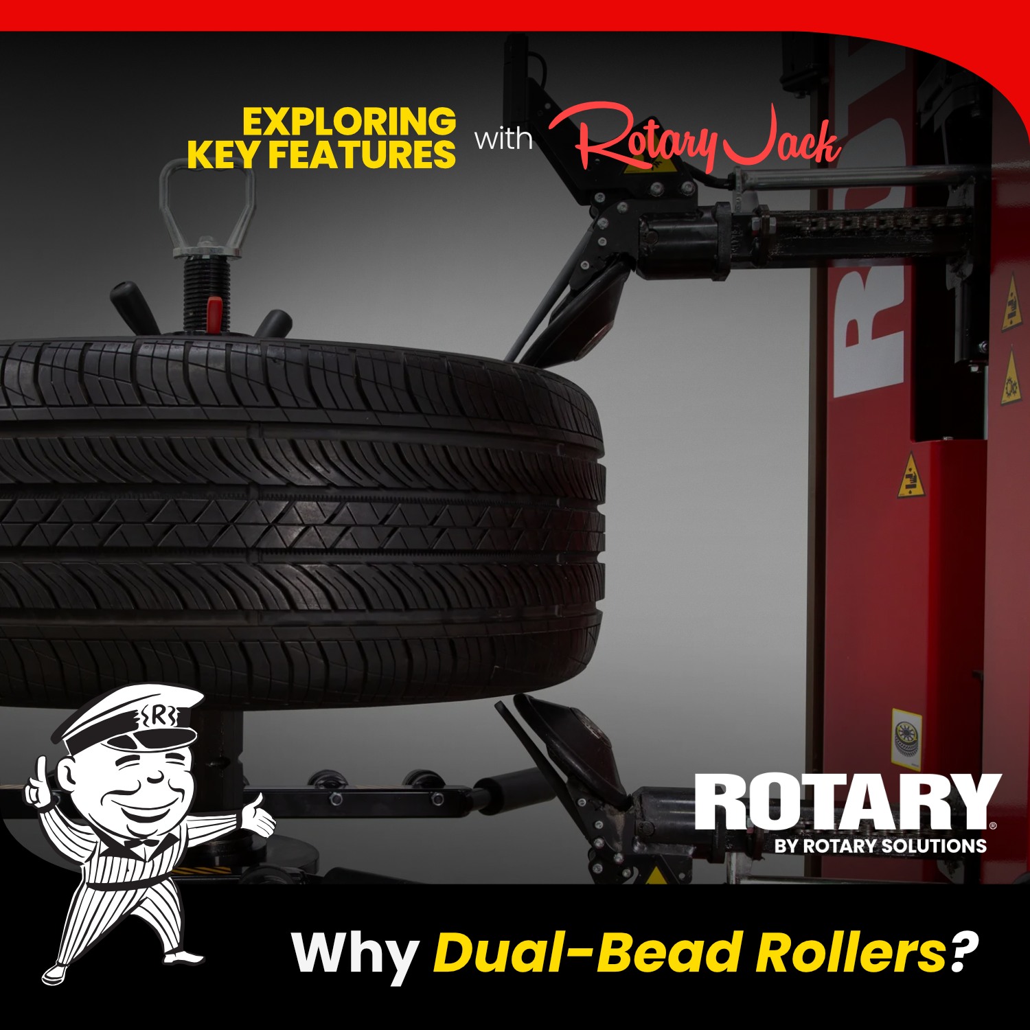 Upper/lower bead rollers allow the technician to loosen the tire bead from the rim safely. Far superior to single-bead rollers, this feature can also hold the tire during match-mounting to the rim.