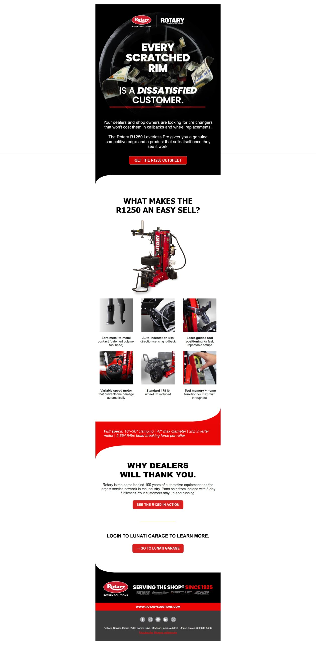 Whether your tech is servicing sets of tires, needs to quickly clear the workspace between wheels or adjust the machine’s speed, the R1250 brings unbelievable control to your shop’s fingertips. Empowering your techs to do more, the R1250 offers the incredible speed and care shops have come to expect from a Rotary.