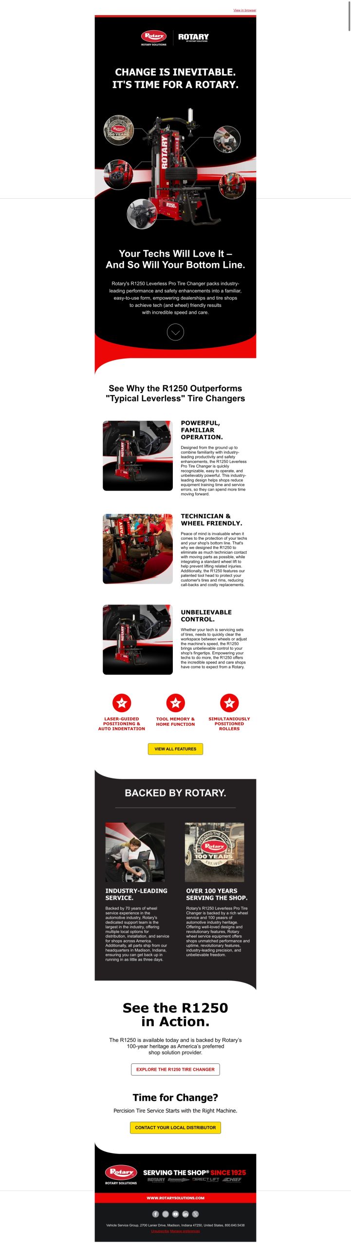 Rotary’s R1250 Leverless Pro Tire Changer is backed by a rich wheel service and automotive industry heritage. Offering well-loved designs and revolutionary features, Rotary wheel service equipment offers shops unmatched performance and uptime, revolutionary features, industry-leading precision, and unbelievable freedom.