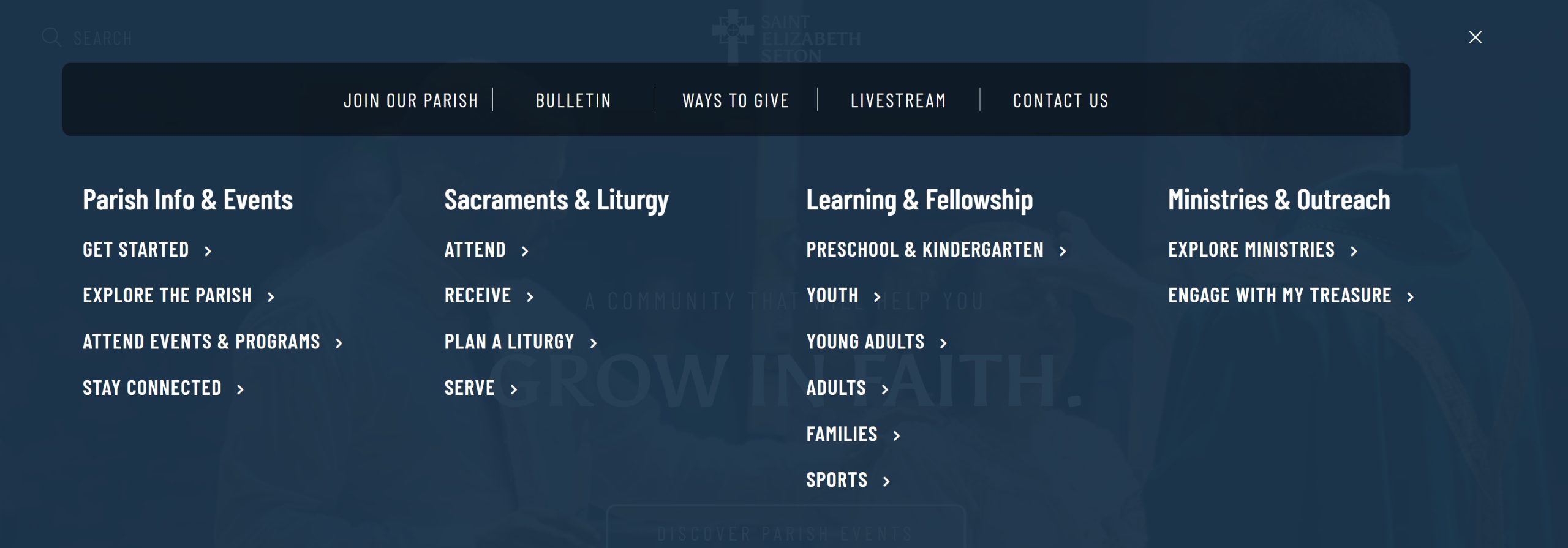 Leading the brand and website redesign of one of the largest Catholic Churches in the State of Indiana, Trenton’s goal was to rethink how parishioners engage with information, to simplify that process, and to develop a beautiful user interface filled with powerful, storytelling-driven content. eCatholic rated this collaborative, custom web design as one of the best parish websites they have ever made.
